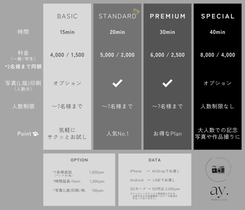 ay.studio〈エーワイスタジオ〉は、人とペットが気軽に入れる写真スタジオです。